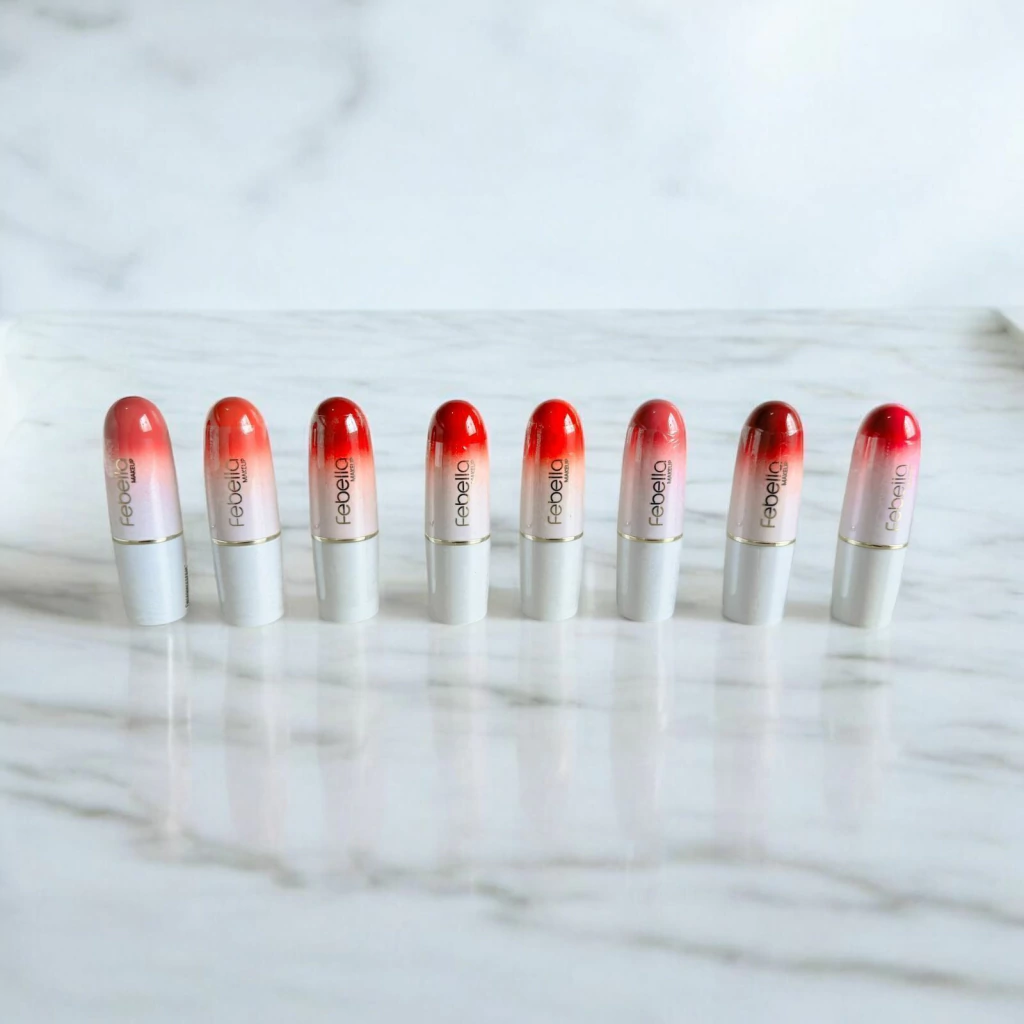 O Batom Bastão Lip Color Ruby Red Febella oferece uma cor intensa e sofisticada, com acabamento cremoso que garante lábios hidratados e duradouros.