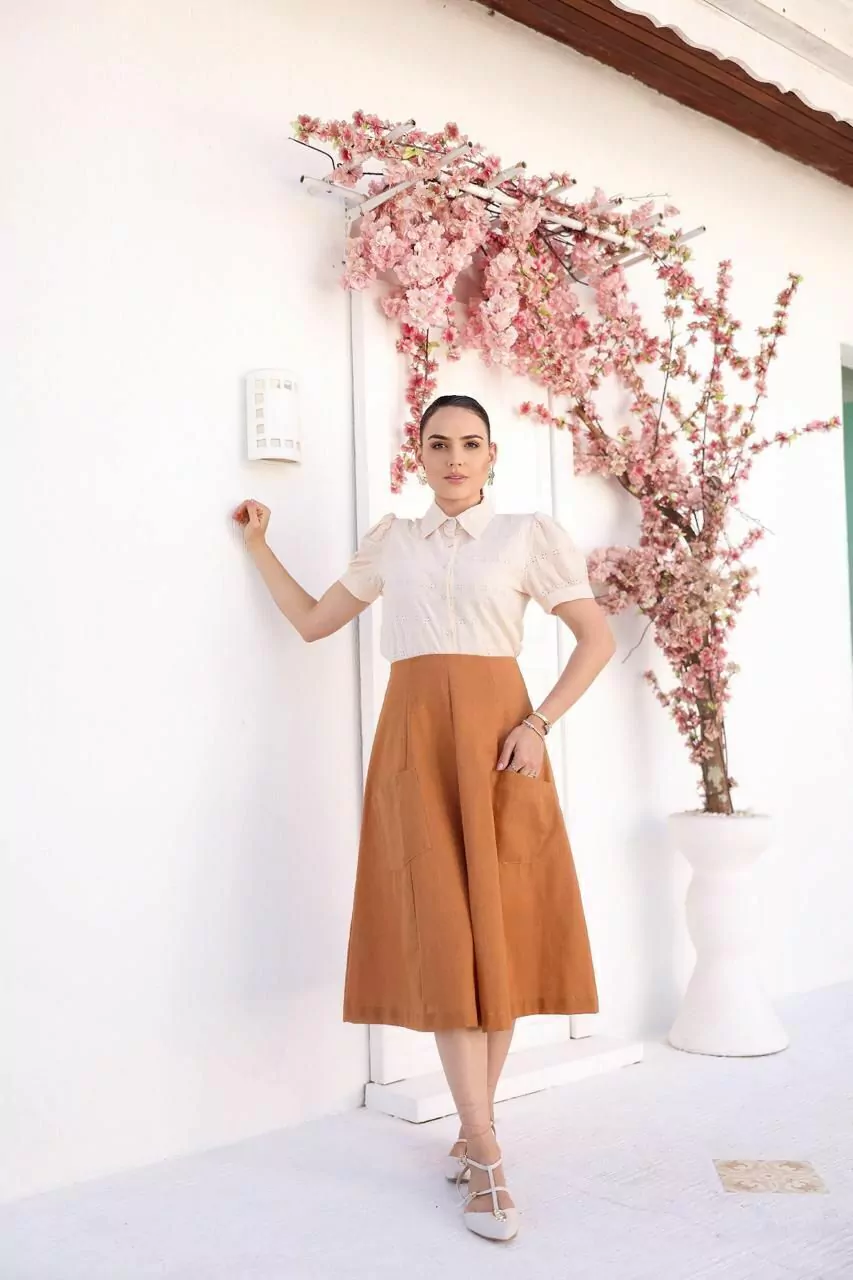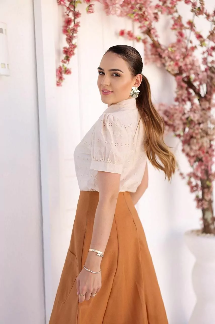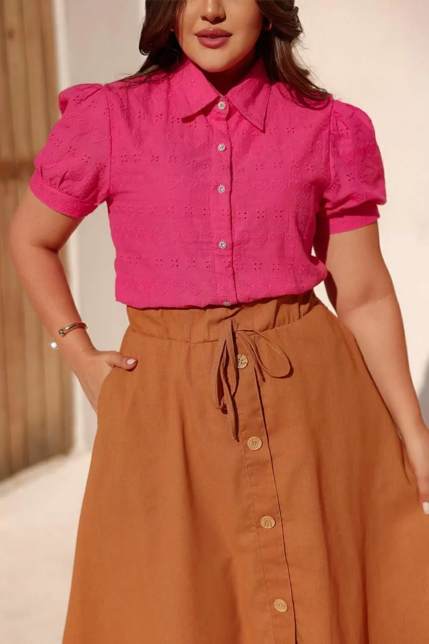 Detalhes da Blusa: - Gola: Camisa com um toque elegante. - Tecido: Todo trabalhado, proporcionando um visual diferenciado. - Fechamento: Botões funcionais que garantem praticidade e charme.