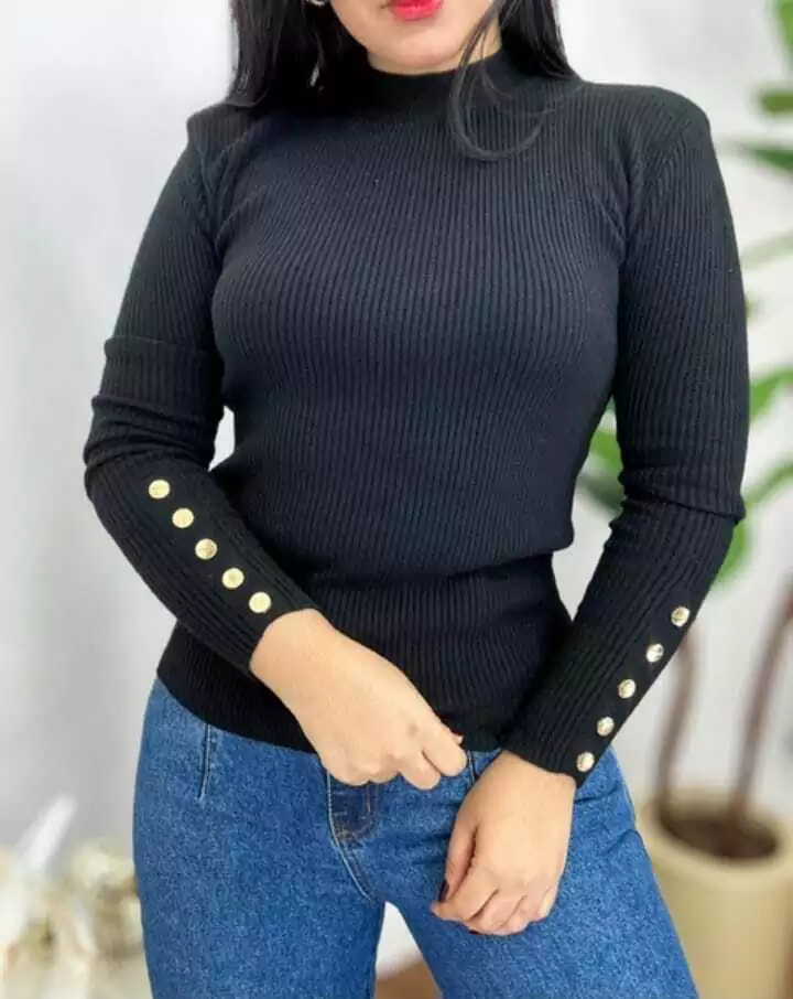 Descrição; Feito com material de alta qualidade super confortavel possue detales de botões dourados no punho , um blusa com toque do tecido macio , maleavel , ajusta do corpo perfeito para os dia mais frios .