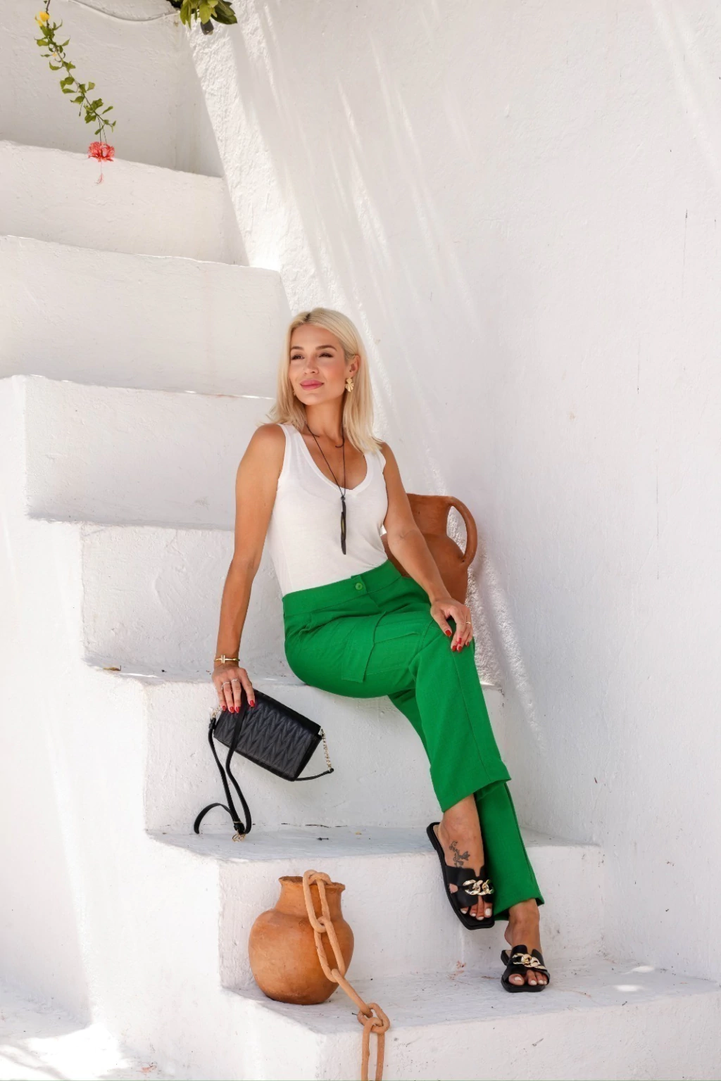 Calça Rafaela em linhão: 100% Poliéster.
