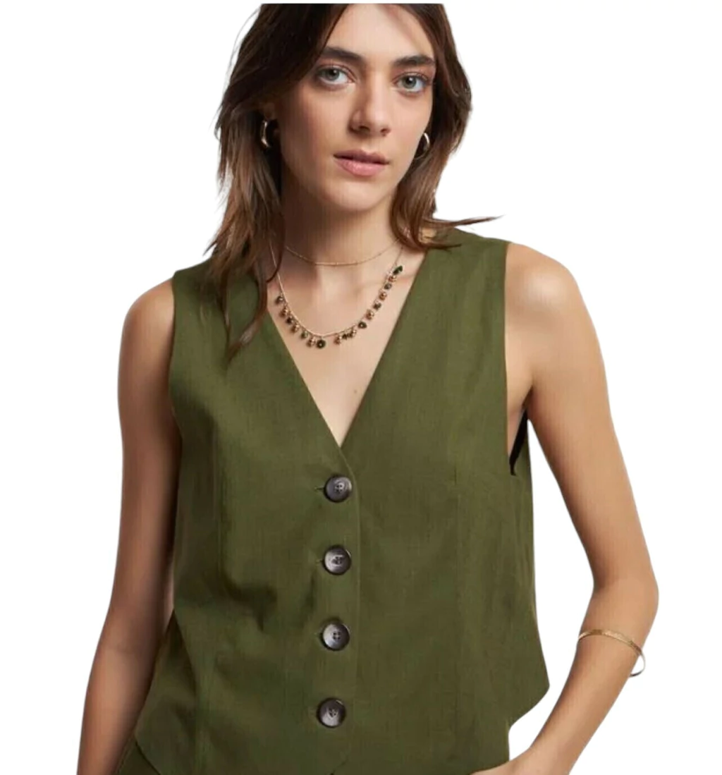 Descrição do Produto: Apresentamos o Colete Feminino Alfaiataria-Linho-Viscose Kiraz, uma peça versátil que combina estilo e conforto. Ideal para compor looks sofisticados, este colete é confeccionado com três tipos de tecido: Alfaiataria, Linho e Viscose, garantindo a melhor escolha para cada ocasião.