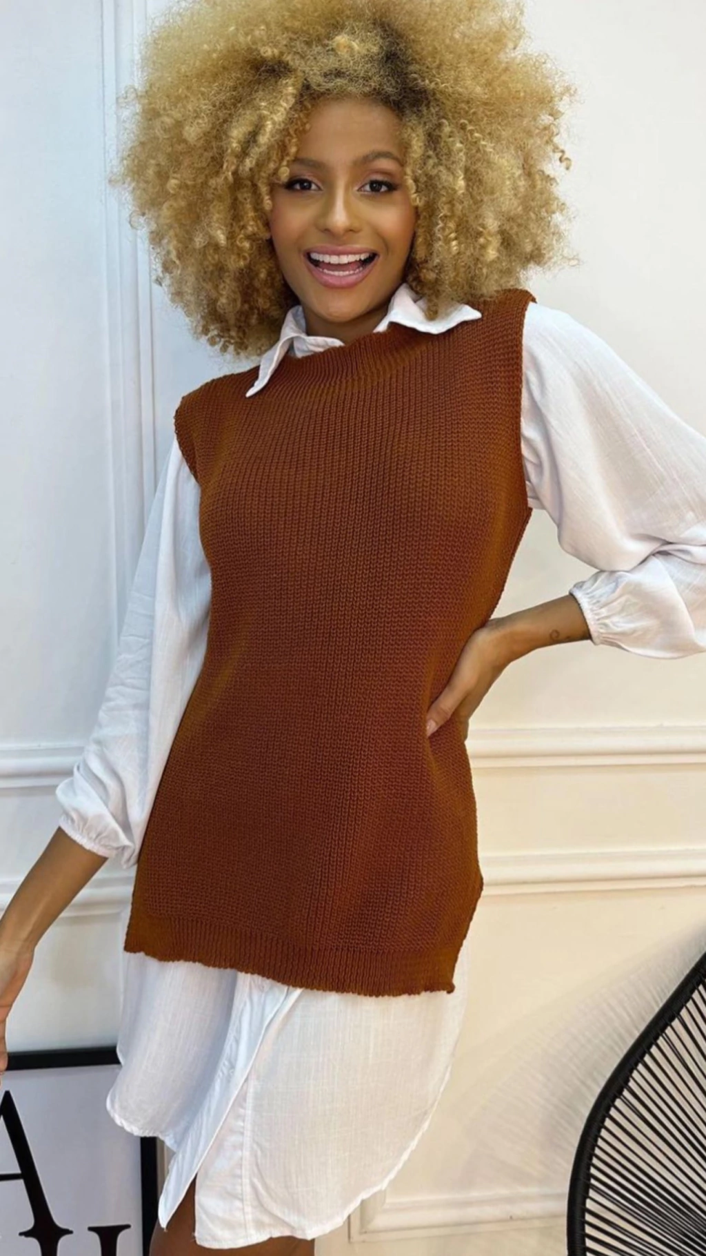 Aquele colete com cara de aconchego e super versátil que faltava no seu closet. É uma peça clássica e traz um ar moderno e descontraído com sua modelagem. Aposte em peças coloridas para compor o visual, camisas ou no clássico jeans para um look mais despojado.