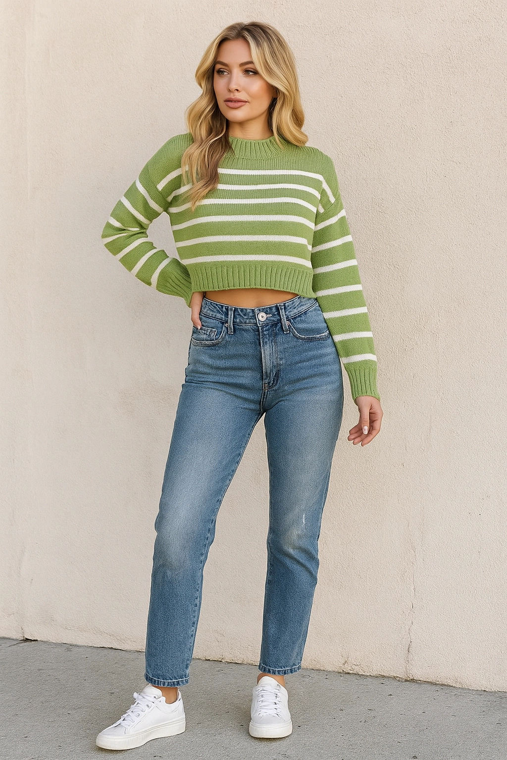 O fato da blusa ter as mangas longas ajuda a proteger os braços do frio, ao mesmo tempo em que o comprimento curto dá um toque moderno e descolado ao visual.