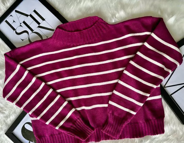 O cropped do anúncio é uma blusa feminina de tricot com mangas longas e comprimento curto, ou seja, ela termina acima da cintura. Essa peça é muito versátil e pode ser usada em diferentes ocasiões, mas especialmente no inverno ela pode ser considerada indispensável para compor um look quentinho e estiloso.