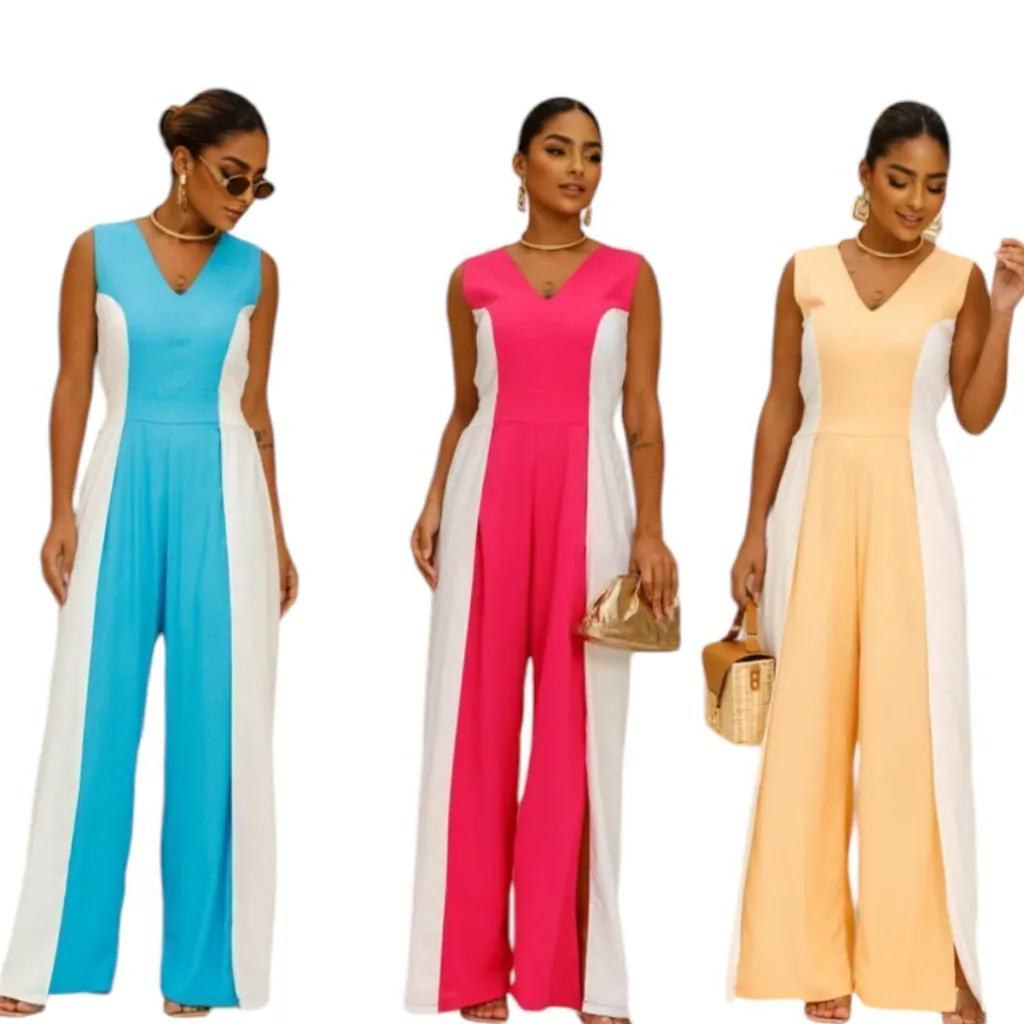 Macacão Longo Feminino com Recortes Bicolor - Elegância e Conforto