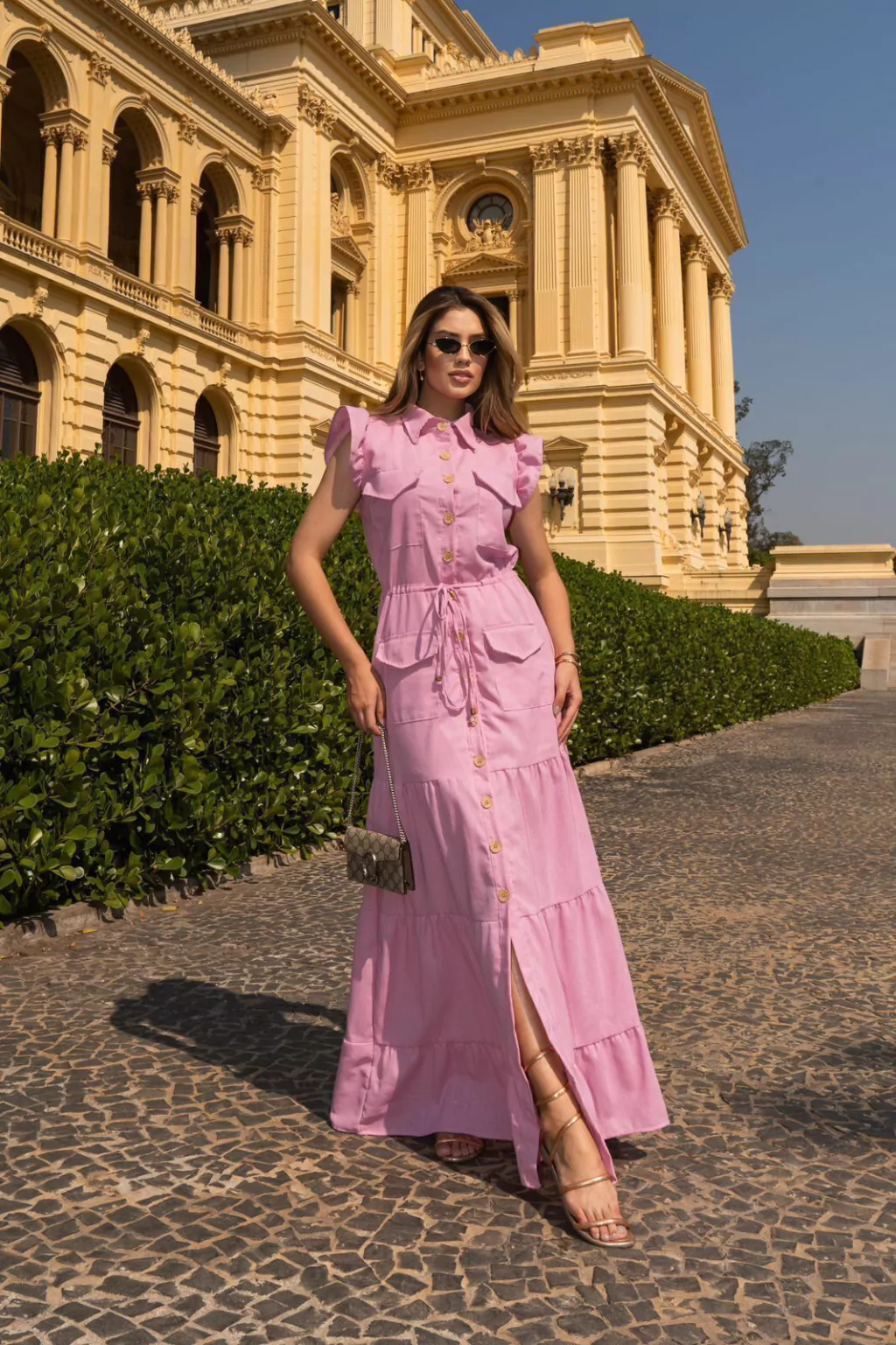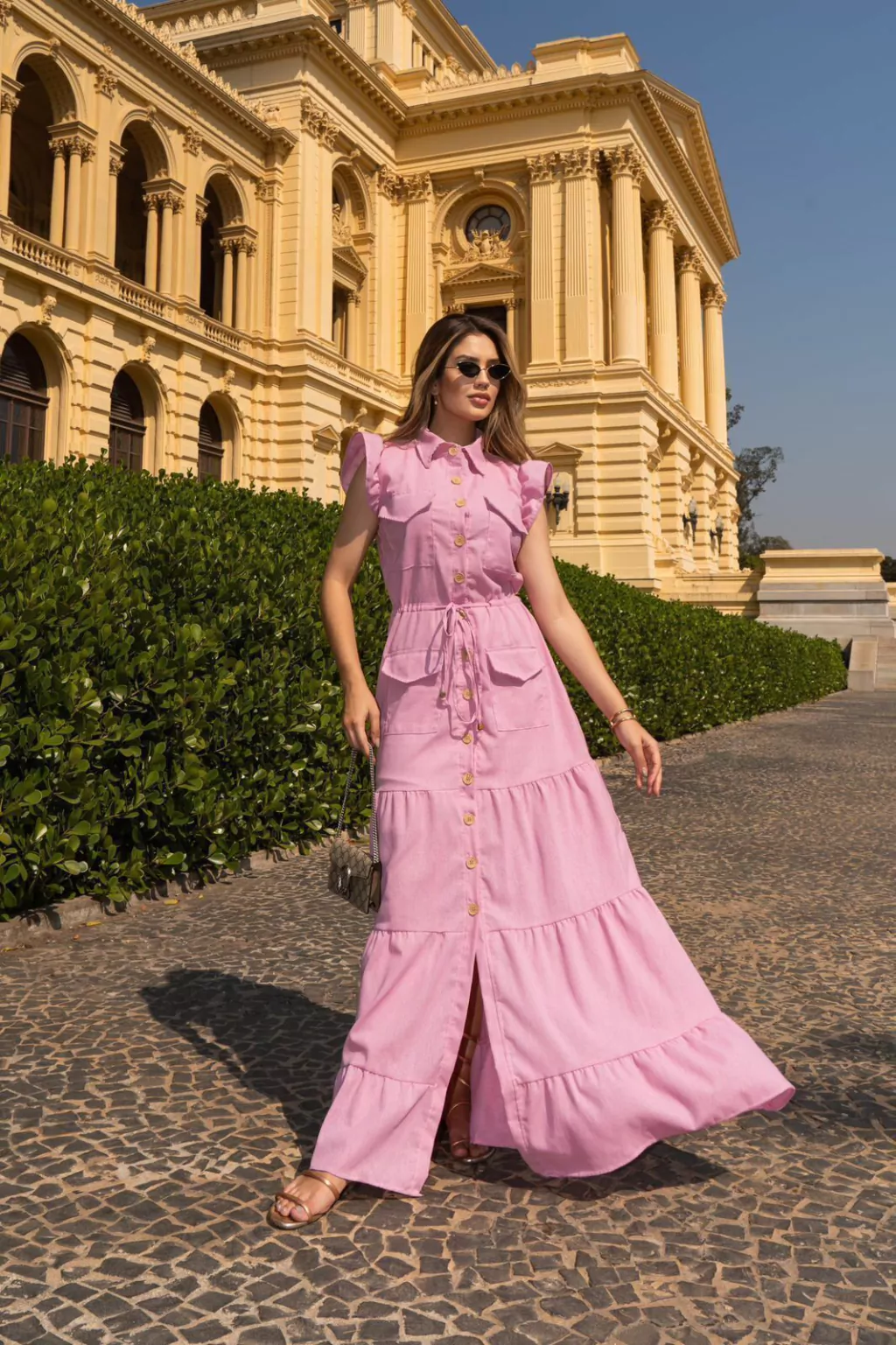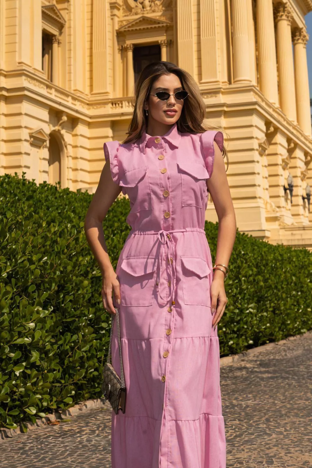 O Vestido Chemise Linho Forrado Jasmin é a escolha perfeita para quem busca elegância e conforto em uma única peça. Composto por uma mistura delicada de 67% linho, 30% viscose e 3% poliéster, este vestido oferece um toque suave e respirável, ideal para os dias quentes.